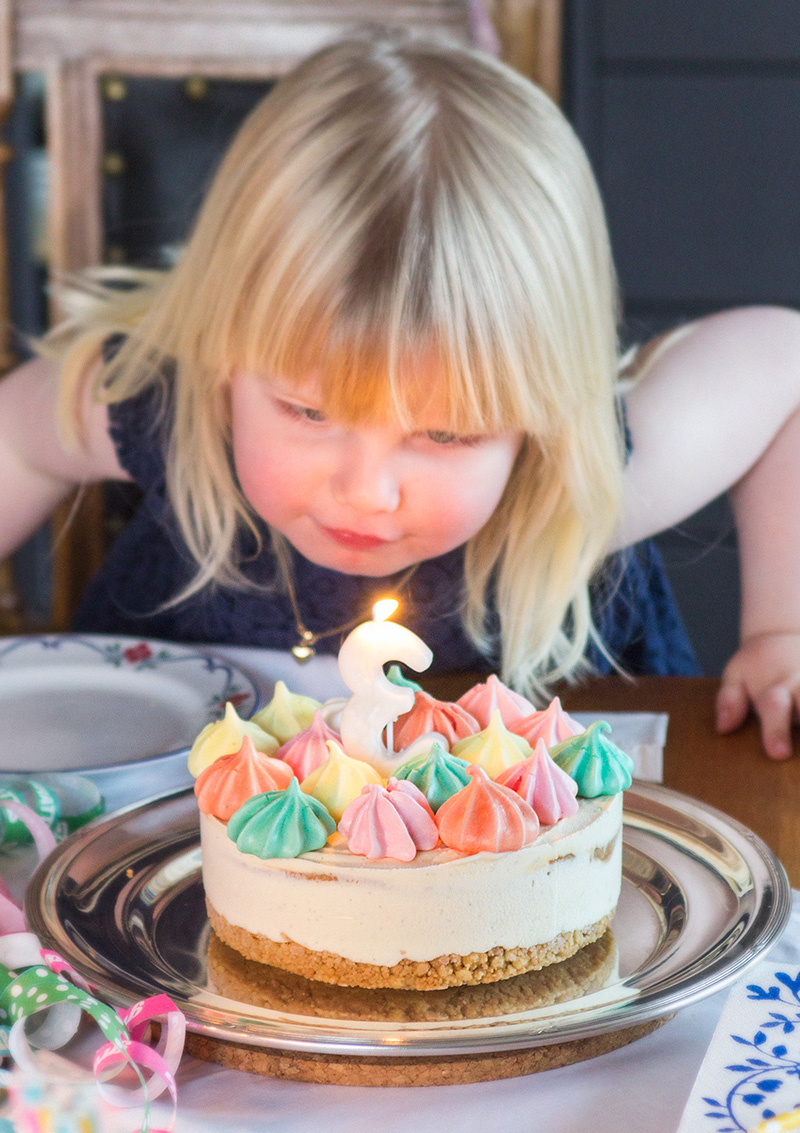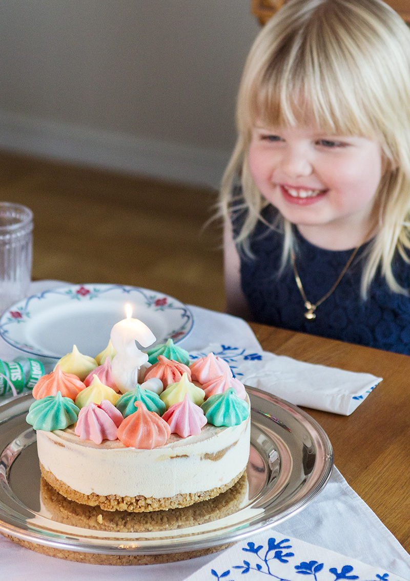 Hon önskade sig glass som ni alla vet och jag kände att det säkraste kortet var en glasstårta med vanilj. Att hon äter det mesta som stavas glass vet jag, men jag tänkte mer på de andra barnen som skulle komma. Lite dulce de leche emellan och maränger på toppen fick det bli. Hon var nöjd, då var jag nöjd.