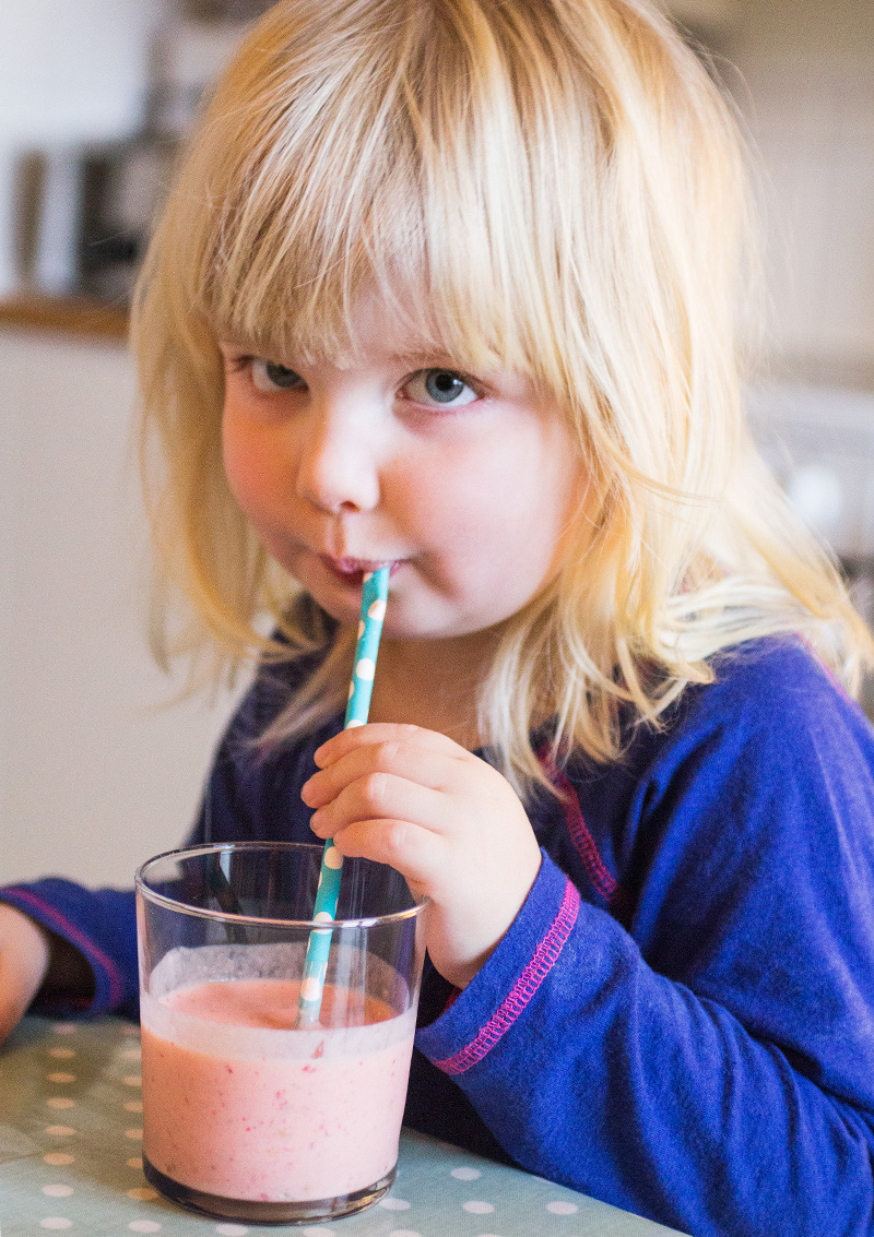 Jaha, då har vår lilla tjej fyllt 3 år. En händelserik dag med lägenheten full av vuxna, barn och en hund. Hon började dagen med en liten smoothie och att dricka med sugrör är ju för roligt.